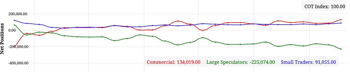 Die Marktaufteilung ist damit weiter gespalten. Die großen Spekulanten bleiben weiter Short und setzen auf eine Korrektur, während sich sowohl die Commercials als auch die Kleinanleger auf steigende Kurse einstellen. Das sorgt für eine deutliche Konfrontation zwischen „Smart Money“ und Spekulanten.