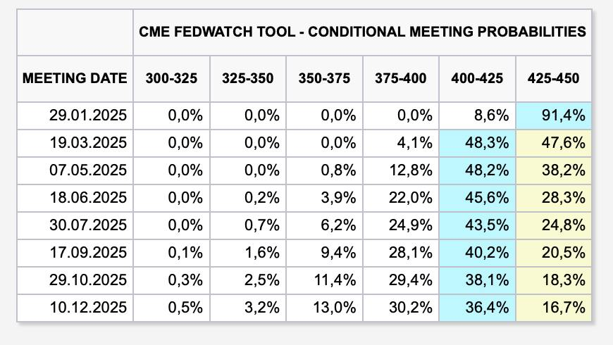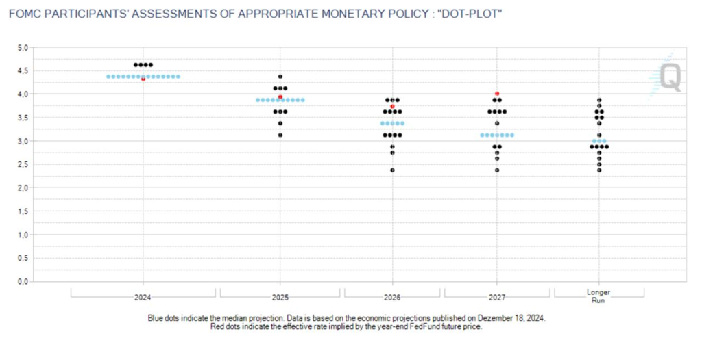 Hier einmal der aktuelle Dot Plot mit den voraussichtlichen Zinssenkungen für 2025.