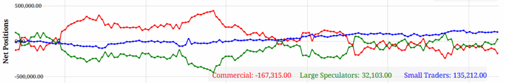 Im Vergleich zu den letzten Wochen, haben sich die Commercials weiter stark abgesichert. Dies tun sie um Verluste bei einem Anstehenden Kursverlust klein zu halten. Historisch gesehen sind solche Momente, in denen Commercials stark gehedged sind, mögliche Tiefs einer Korrektur. Um das eindeutig sagen zu können, müssen Technische Aspekte berücksichtigt werden, welche wir hier nicht zur Verfügung stellen können.