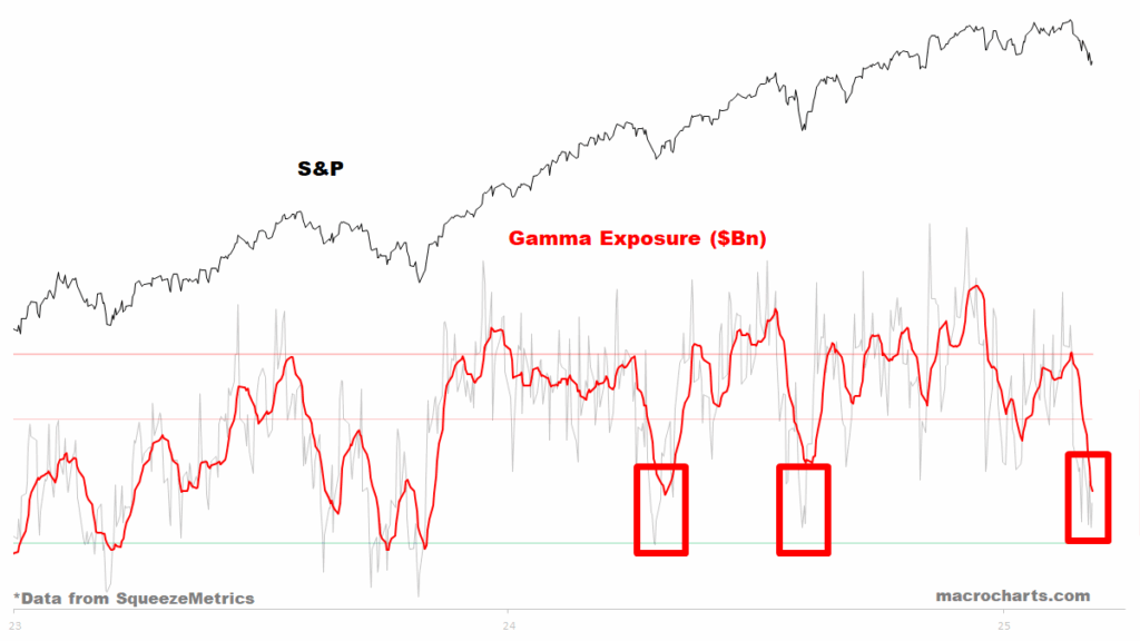 Das Dealergamma bleibt weiterhin im weniger stabilisierenden Bereich. Sprich, Bewegungen im Markt werden nicht verlangsamt, sondern verstärkt. Dadurch kommt es zu sehr volatilen Märkten, welche sich auf kleineren Zeiteinheiten nur schwer handeln lassen.