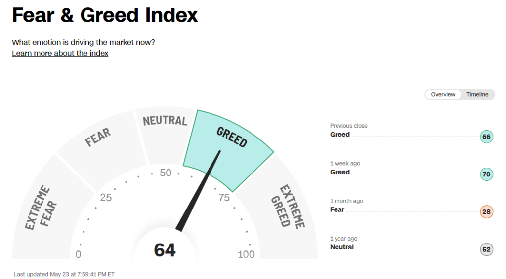 Auch diese “Datenlage” hat einen kleinen Rücklauf einbüßen müssen. Letzte Woche standen wir noch bei einem Wert welcher über 70 lag (also kurz vor “Extreme Greed”) welcher mittlerweile auf dem weg zu “Neutral” ist. Sehr kredibil ist dieser Chart nicht, da er sich in der Regel immer dem aktuellen Indize Verlauf anpasst. Bessergesagt zeigt er die “Psychische Situatin” von Reatail Tradern.