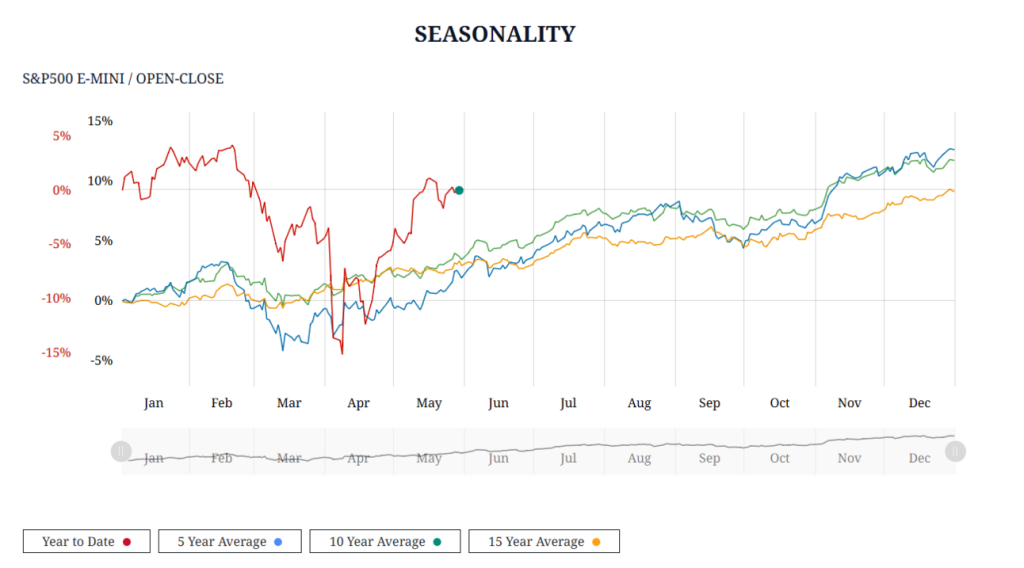 Die Grafik zeigt die prozentuale Veränderung des S&P 500 im Monat Juni von 1995 bis 2023. Auffällig dabei ist, dass der Juni zu den schwächsten Monaten des Jahres – mit überdurchschnittlich vielen negativen Ausschlägen, etwa 2002, 2008 und 2022 (nahe -9%). Trotz einzelner starker Jahre wie 2020 bleibt die Tendenz negativ. Bloomberg bezeichnet den Juni daher als dritt-schlechtesten Monat des Jahrhunderts für den Index- ein klarer Hinweis auf saisonale Schwäche.