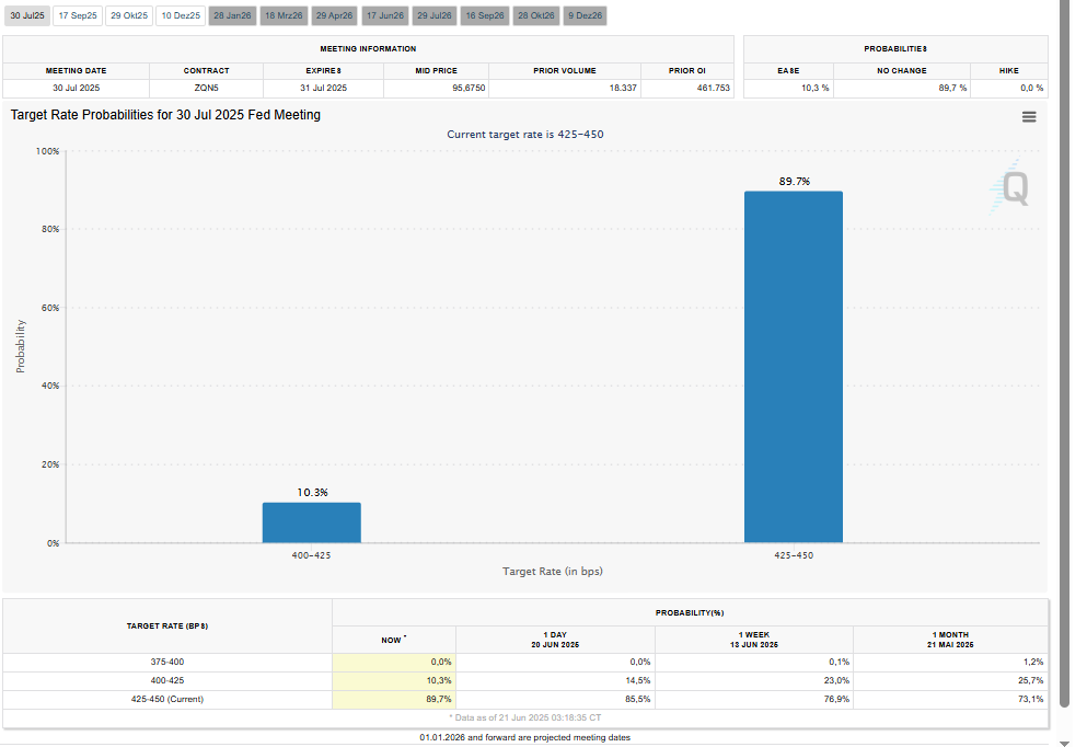 Wie erwartet, hat die FED keine Änderungen vorgenommen und der Basiszinssatz bleibt vorerst bei 425-450 Basispunkten.