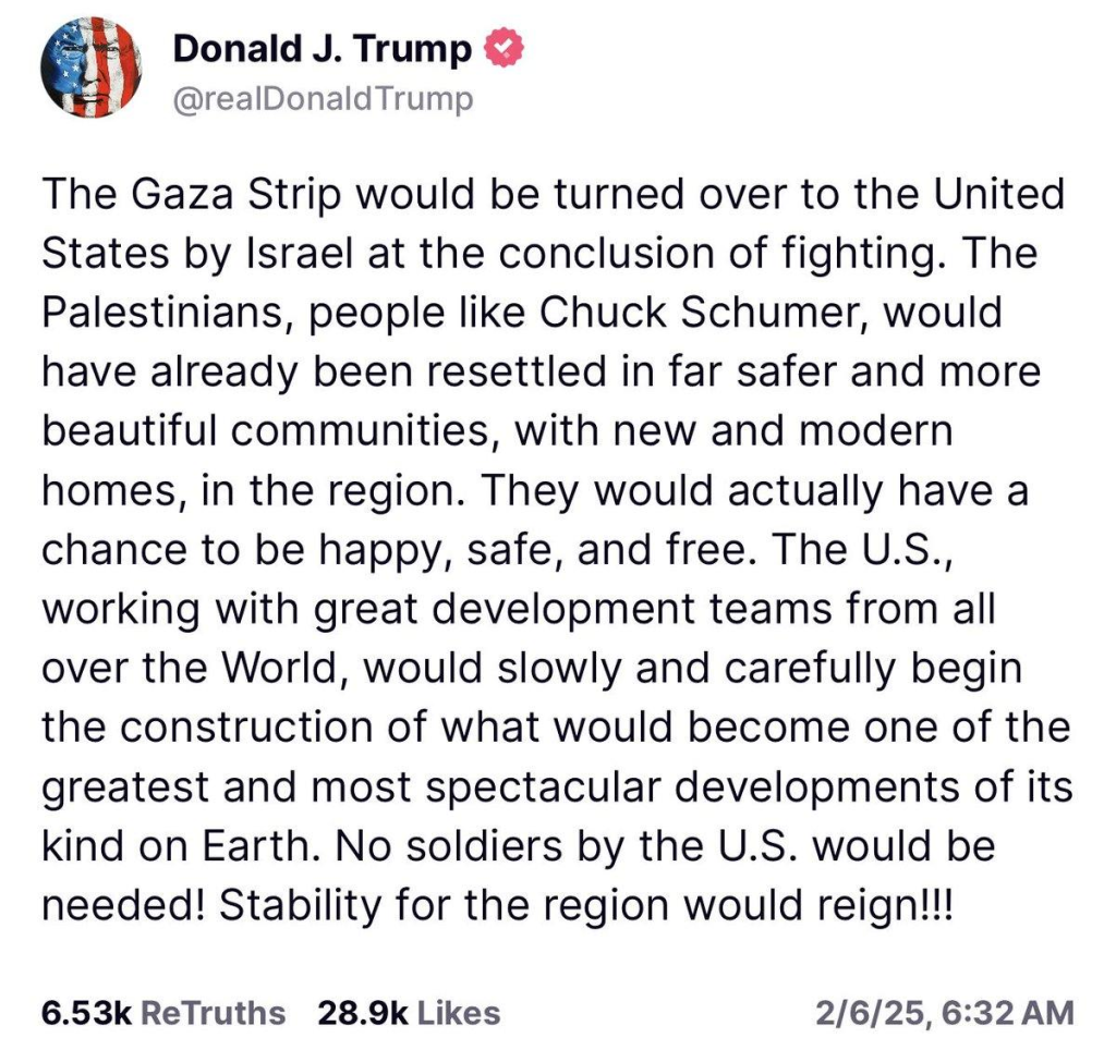 Kleiner Nebenschauplatz: Trump hat Ideen bzgl. einer Übernahme des GAZA-Streifens. Die Arabische Welt wird sicherlich begeistert sein…