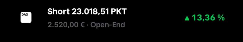 Diese Woche war, wie auch die letzte, sehr volatil jedoch nicht so eindeutig was die Trendrichtung angeht. Die Bullen als auch Bären waren schwächer und der Markt schaukelte mehr hoch als dass er einen Eindeutigen Trendimpuls geliefert hätte. Ich konnte im 100k Portfolio einige Chancen mit der Community umsetzen, der in % Beste Trade diese Woche ist ein noch laufender SHORT-Trade auf den DAX40.