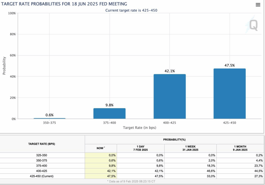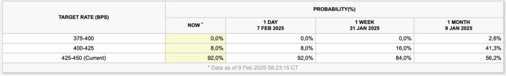 Ich wiederhole Heute nochmals für alle kurz: Die nächsten FED Sitzung zum Thema Zinsen findet am 19.März statt und richtig gelesen – Im Februar wird es keine FOMC-Sitzung geben! Der Februar legt damit Geldpolitisch eine Pause ein. Die aktuelle Wahrscheinlichkeit einer Zinssenkung liegt bei 8% und damit stellt sich auch hier der Markt auf keine weitere Zinssenkung ein.