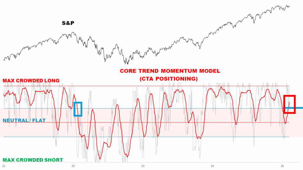 Die Datenlage zeigt uns, die großen INSTITUTIONEN haben Ihre Positionierung nach 10 Wochen verändert und HEDGEN die LONG-Seite ab indem sie Ihre SHORT-Positionierung ausweiten. Unsere Datenlage reicht bis zum 4. Februar zurück, d.h. die letzten 3 Tage sind hierbei (wie immer zeitversetzt) noch nicht inkludiert. Die INSTIS haben endlich ABSICHERUNGEN gegen ZÖLLE, DEEPSEEK oder andere UNSICHERHEITEN aufgebaut und sollten sie diese nächste Woche nicht wieder abgebaut haben, vielleicht gar weiter ausbauen, so könnten die Indizes eine mittelfristige Korrektur abtragen, die einen Re-Test der 200-Tagelinie zur Folge hätte.
