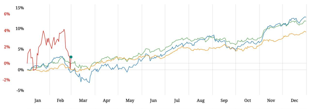 Donald Trump hatte mit seinen „Tweets and Tariffs“ einen großen Anteil an den Bewegungen im Februar, was uns als aktive Trader viele Chancen – aber auch Risiken bringt! Hier in der Grafik der Median der letzten 5-15 Jahre für den S&P500 Index.