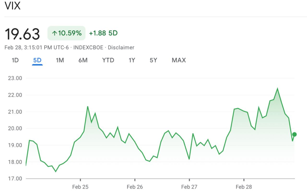 Seit Montag stieg der VIX an und einzig am Freitag, dem letzten Tag des Monats, konnte sich der Markt wieder ins Plus retten. Ich tippe stark auf das Asset-Rebalancing zum Ende eines jeden Monats, dass hier nochmal die Performance der Indizis etwas ausgleichen konnte.